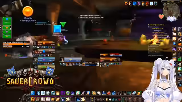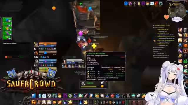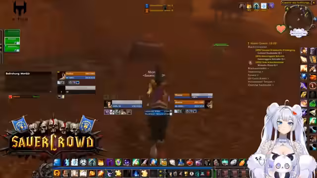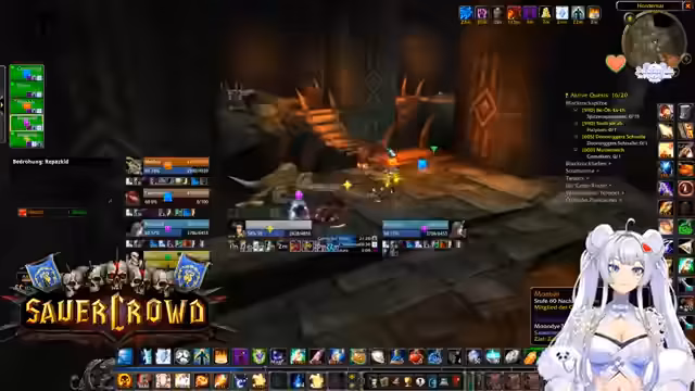 07:16:56Kani wird als MVP eines Quests bezeichnet. Es wird über unterschiedliche Leveltempo und die depressive Wirkung der 40er-Levelzonen gesprochen. Fanny und Tapsi werden ebenfalls erwähnt, wobei letzterer Probleme mit der Paladin-Klasse hat. Die Gruppe sucht nach Quests für die Hydraxian Waterlords, die spezielle Kerne der Elemente erfordern. Es kommt zu technischen Diskussionen, wie z.B. die Anzeige von Sound-Effekten, die im Mute-Zustand nicht funktionieren. Die Gefahr eines PvP-Questgebiets wird thematisiert, weshalb die Spieler vorsichtig agieren und um Begleitung für bestimmte Quests bitten.