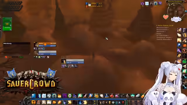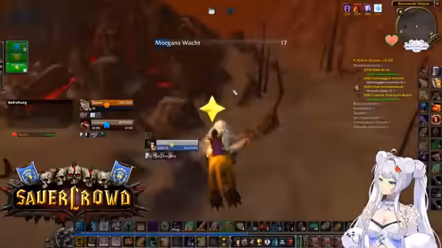 02:10:18Bevor der Instanzzugang zur Brennenden Schlucht erfolgt, gibt es wichtige strategische Absprachen. Der Streamer warnt davor, den traditionellen Weg über die Brennende Steppe zu nehmen, da dort ein spezieller Hunter-Mob spawnen kann, der den Spieler mit einem Nova-Zauber instant tötet. Der sicherere Weg führt über Sengen die Schlucht. Man klärt, dass die Gruppe aus fünf Personen besteht und man mehrere Quests auslassen möchte. Ziel ist es, schnell und sicher ins Innere zu gelangen, um dort zu beginnen, wobei die Spieler über die genauen Bewegungen der Gegner diskutieren, um sie gezielt pullen zu können.