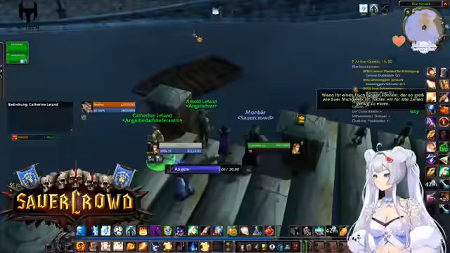 05:45:03Neben dem Hauptgeschehen widmet sich der Streamer auch kleineren Aktivitäten wie dem Angeln in Sturmwind. Hierbei zeigt er Unwissenheit über das System und wird von der Community angeleitet. Gleichzeitig unterhält er sich über lokale Besonderheiten, wobei ein humorvoller Streit über die österreichische Spezialität 'Kornspitz' entbrennt. Dies zeigt den lockeren, ungestellten Charakter des Streams, bei dem auch private Gespräche und Interaktionen mit der einen wichtigen Platz einnehmen.