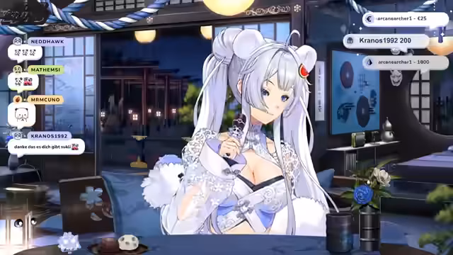 00:14:23Die Stream beginnt mit einer mythischen Erzählung über Amaterasu Omi, die ihre tierischen Gefolge unter sich versammelte, um ins Reich der Sterblichen zu ziehen. Nur ein Panda vernachlässigte ihren Ruf, da er sich um seinen Bambus kümmerte. Als er eine schwache Melodie aus einer Wassermelone hörte, fand er ein kleines, erlöschendes Licht. Dieses Licht erbat sich Amaterasus Rat, da es bald erlöschen würde. Aus Mitleid gab Amaterasu dem Licht einen Teil ihrer Kraft und verwandelte es in ein himmlisches Wesen mit langen weißen Haaren und Panda-Ohren.