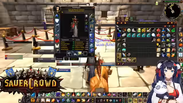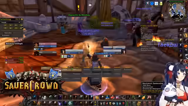 02:36:51Nach dem erfolgreichen Kampf wird die Lootvergabe organisiert. Ein 'Teufelshetzer Handschuh' für einen Hexenmeister wird im Chat ausgerollt. Der Streamer moderiert den Prozess, verkündet den Gewinner und gratuliert im Namen der 'Sauerkraut Gilde'. Anschließend geht es direkt zur nächsten Aufgabe, ohne große Verzögerungen, um die World Buffs nicht zu verlieren.