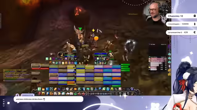 02:11:58Nachdem der Streamer die Verwirrung um das Makro für die Priester geklärt hat, wird der Countdown für den Pull gestartet. Er gibt letzte Anweisungen, insbesondere für die 'Melees', die sich auf ihre Aufgaben konzentrieren müssen. Der Streamer fordert alle auf, sich hinter dem Boss zu positionieren und führt den Pull durch, der sich erfolgreich gestaltet, wie die positive Reaktion im Chat zeigt.