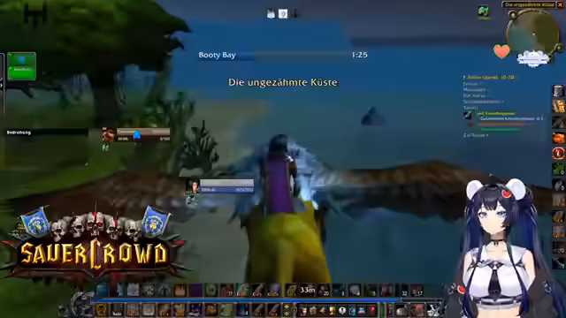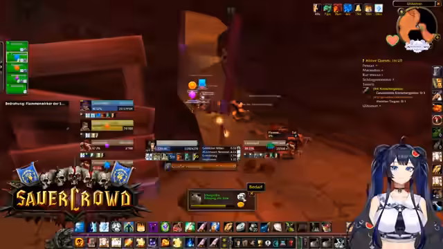 09:29:47Der Stream konzentriert sich auf das Gruppenspiel im Gebiet Furienpost. Der Fokus liegt auf der Erzeugung von Schaden, wobei der Effekt von "Anregen" auf den Schildpriester Suki diskutiert wird. Diese Fähigkeit ist entscheidend für die Mana-Regeneration im Kampf. Parallel dazu wird intensiver Ruf bei den Furboxen ge farmt, da ein neutraler Ruf notwendig ist, um eine bestimmte Höhle betreten zu können. Die Spieler priorisieren die Quests im Gebiet, insbesondere die Beschaffung von Federn für eine Quest, die Erfahrungspunkte und später für eine Verzauberung bringen wird.