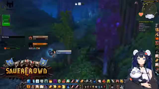 09:16:06Die Gruppe kehrt nach Felwood zurück, um gezielt auf Ruf für die Fraktion Holzschlundfeste zu farmen. Der Streamer betont, dass der Hauptzweil das Sammeln von Ruf ist und das Töten von Gegnern nur ein Mittel zum Zweck ist. Der Ruf-Fortschritt wird im Chat beobachtet und gefeiert. Anschließend wird der Kampf gegen eine Gruppe von Furbugs aufgenommen, bei der der Streamer die Rolle des Tanks übernimmt und viel Freude an der tanking-Aktion hat.
