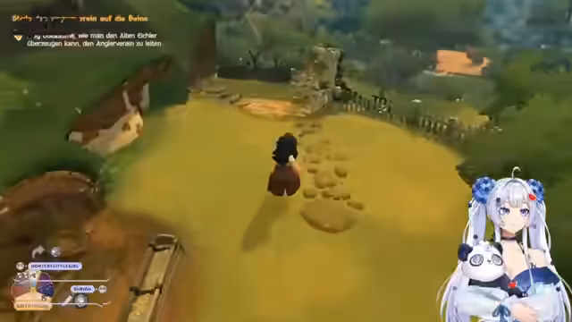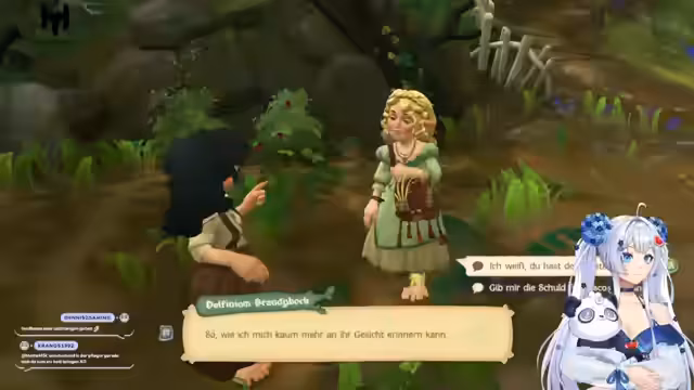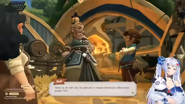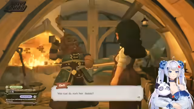03:02:01Die Streamerin stellt ihre Charaktere vor, darunter Suki Diggel aus Bré und Goldblume Potts, die das Gasthaus zum ALG in Wasserrau betreibt. Sie berichtet über ihre Erfahrungen, zehn Jahre hinter einem Tresen gestanden zu haben, und beginnt eine Queste, die den alten Eichler und den Anglerverein betrifft. Dabei zeigt sie ihre Rolle in der virtuellen Welt und ihre Interaktionen mit anderen Charakteren.