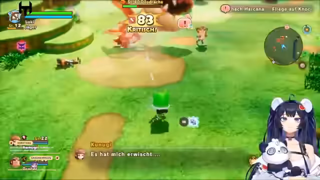 03:36:09Nachdem der Streamer in einen anderen Bereich gelangt, trifft er auf Pino, eine Gießkanne, die verwandelt werden muss, um den Weg nach Blättlingen zu zeigen. Die Reise führt sie in den Irrwald, der an Zeldas Dekubaum erinnert und in dem man sich leicht verlaufen kann. Nach einem Gespräch mit Matthias erfahren sie, dass die Ohren im Hain kaputtgehen könnte. Sie treffen auch auf Grummelchen, einen kleinen Drachen, den der Streamer aufnimmt.