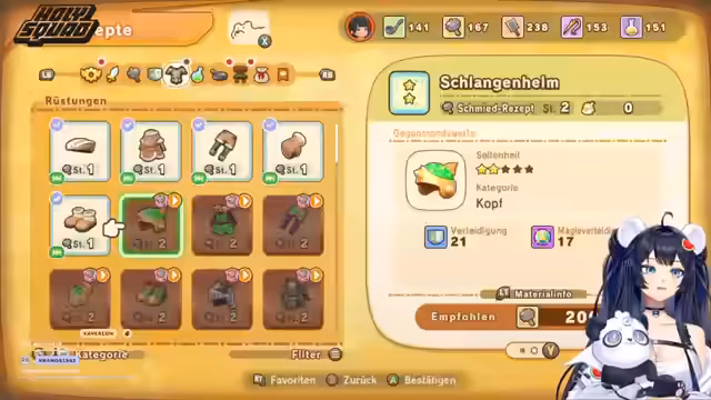 08:09:38Die Party erhält neue Mitglieder wie eine Köchin und eine Schürferin, während die Geschichte um den erkälteten Weisenbaum weitergeht. Der Spieler muss Monster bekämpfen, um an spezielle Materialien wie Schlangenpanzer zu gelangen. Gleichzeitig wird über das System der Partymitglieder gesprochen, das durch das Besiegen von Bossen freigeschaltet wird.