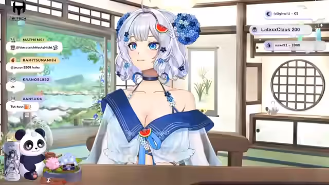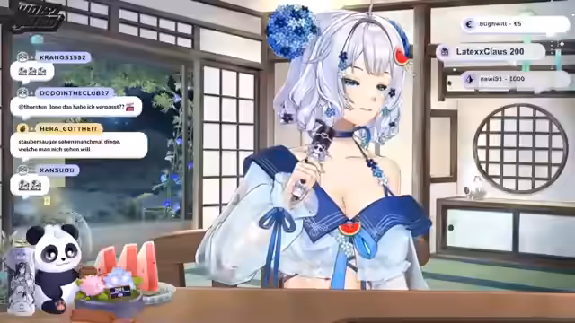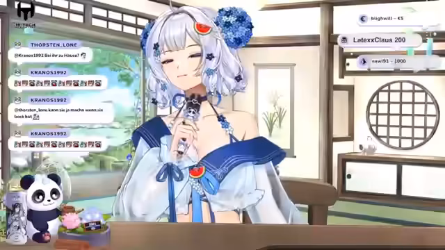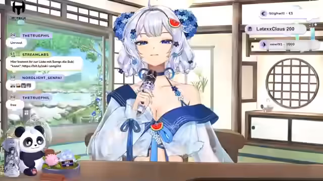 00:17:21Der Stream beginnt mit einer Fan-Fiction-Erzählung über Suki. Ursprünglich war Amaterasu Omi nur im Himmel, wünschte sich aber, die Sterblichen kennenzulernen. Sie sendet ein kleines Licht, aus einer Wassermone befreit von einem Panda, in die Menschenwelt. Dort verwandelt Amaterasu das Licht in ein himmlisches Wesen mit langen weißen Haaren und Panda-Ohren und benennt es Suki. Suki wird mit der Aufgabe in die Menschenwelt geschickt, um zu lernen wiederzustrahlen und als Licht in der Dunkelheit zu fungieren. Nachdem sie einen Mut zusammengenommen hat, betritt sie die neue Welt.