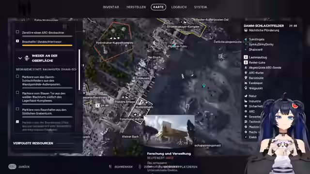 08:03:39Der Streamer bearbeitet mehrere Quests und Missionen im Spiel, darunter das Reparieren von Raider-Hedges und das Sammeln bestimmter Gegenstände wie Papiere und Materialien. Es gibt Diskussionen über den Fortschritt bei diesen Quests und die Belohnungen, die man erhält. Der Streamer erwähnt auch die Schwierigkeit bestimmter Aufgaben und die Notwendigkeit, gut ausgerüstet zu sein.