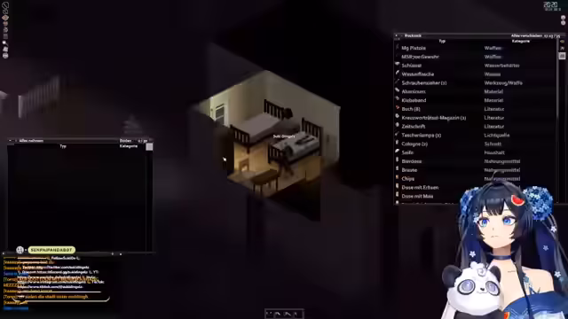 00:51:21Der Stream beginnt mit dem Spiel Colomari. Die Streamerin widmet sich den grundlegenden Überlebensaufgaben, wie der Anpflanzung von Kartoffeln, Mais und Tomaten hinter dem Haus. Sie bereitet einen Eintopf zu, der ihren Hunger füllt, und beginnt anschließend mit dem Sortieren und Aufräumen eines Lagers. Sie ordnet verschiedene Materialien wie Werkzeuge, Kleidung, Waffen und Elektroschrottkisten systematisch ein, um ihre Basis besser zu organisieren.