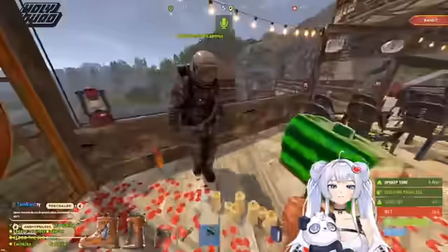 01:16:41Der Stream startet eine Sonderaktion: Die Community wird aufgerufen, Sonnenblumensamen zu sammeln und in spezielle Boxen im Hauptlager zu deponieren, um sie für den bevorstehenden Raid zu nutzen. Trotz intensiver Suche in den Wäldern und der Map kann der Streamer nur drei Sonnenblumen finden. Er bittet die Community im Chat um Hilfe und bietet an, im RP-Bereich nachzusehen, da Blumen sehr selten sind.