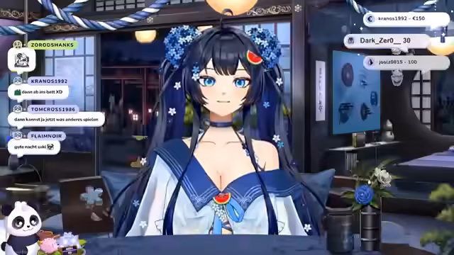 00:17:26Der Stream beginnt mit einer atmosphärischen Erzählung über Amaterasu, die sich in die Menschenwelt begibt, um Sterbliche zu verstehen. Ein Licht, das in einer Wassermelone entdeckt wird, erhält von ihr Kraft und wird zur himmlischen Wesenheit Suki, die die Aufgabe erhält, den Menschen zu helfen. Nach einem Moment der Dunkelheit öffnet Suki ihre Augen und erlebt ihren Eintritt in die Menschenwelt.