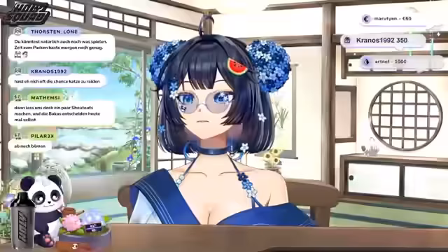 00:17:27Der Stream beginnt mit einer von Suki erzählten Legende über Amaterasu, die ihr Licht auf die Menschenwelt lenken möchte. Um ein schwaches Licht in der Welt der Sterblichen zu retten, sendet sie es als himmlisches Wesen mit Pandaohren und langen weißen Haaren unter den Menschen. Es erhält den Namen Suki und wird mit der Aufgabe betraut, als deren Licht in der Dunkelheit zu fungieren. Nach einer Phase der Dunkelheit öffnet Suki ihre Augen und sieht einen strahlenden blauen Himmel.