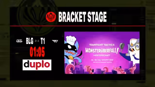02:20:55BLG erzielt einen Kill an Ake und gleicht die Goldverteilung aus, aber T1 muss auf Shin aufpassen. Elks Spiel ist aggressiv und erfolgreich. BLG hat mittlerweile eine 6er Winning Streak im Turnier. Seos muss gegen drei spielen und flasht davon. BLG greift die Topside an, um Plating zu holen. T1 sichert sich den First Tower, aber BLG hat das vorhergesehen. T1 ist immer noch besser dran, da sie mit dem First Tower Guma zurück ins Spiel bringen. T1 verliert den First-Tirret. BLG holt sich gratis Game zurück. Bin ist alleine und wird von Boomer getötet. BLG sprengt damit die Dynamik des Spiels. T1s Top-Lane ist immer noch unangenehm für Bin. Faker hat Glück. AD Carry ist im Rückstand, was einen Unterschied macht. BLG hat Jinx Lulu getraftet. T1 hat die Hoffnung in Cannon. T1 sollte sich jetzt wohl am Fight fühlen, aber BLG gibt den Drake auf und will den Top-Tomb einreißen. Seos teleportiert in den Tod. Bin bekommt den Harry. Seos klickt daneben. T1 hat zumindest noch Gold. Das nächste Spiel ist ein Matchball-Spiel. Solche Plays sind nicht förderlich für das Mental. Faker muss das Schiff ans Ufer bringen. Jace könnte seine Item-Power-Spikes mitbringen. Ona klaut sich die 35 Gold vom großen Raptor. BLG zieht das Kleid sofort von Elke. T1 gibt jetzt den Cloud Swordpoint ab. T1 traut sich nicht zu feilen. T1 verliert Gebiet über Gebiet. T1 hat die Möglichkeiten, nutzt sie aber nicht mehr. Sie wirken zerstreut und konfus. BLG spielt den sicheren Stiefel runter.
