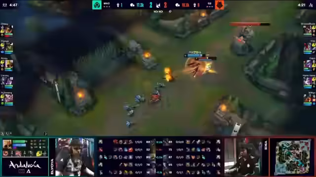 03:50:08Der Stream beleuchtet die Performance von G2 und Mad Lions im laufenden Wettbewerb. Es wird angemerkt, dass G2 Schwierigkeiten hat, seine übliche Dominanz im frühen Spiel zu zeigen, was sich negativ auf ihre Fähigkeit auswirkt, Grenzen zu überschreiten. Mad Lions hingegen nutzen diese Schwächen konsequent aus. Ein entscheidender Moment ist, als Caps von G2 in einer CC-Kette gefangen wird, was zu einem Kill für Joja führt. Trotzdem bleibt das Spiel offen, wobei Mad Lions leichte Vorteile haben. Brokeblade von G2 finalisiert einen Highbreaker, was normalerweise ein Signal für einen weniger aggressiven Spielstil ist, aber G2 engagiert sich trotzdem in Kämpfen, was zu einem Catch von Miki führt. Die Spielweise von G2 scheint im Widerspruch zu ihrer Item-Entscheidung zu stehen. Mad Lions zeigen starkes Projektmanagement, indem sie gruppieren und gleichzeitig Objectives sichern. Ayoja von Mad Lions dominiert mit einer beeindruckenden Kill-Beteiligung. G2 hingegen wird auseinandergepflückt, was ihre Teamkämpfe erschwert. Die Teamfiles für G2 sind schwer zu spielen, da sie Map-Präsenz verlieren und LeBron Kaiser respektieren muss, was ihre Fähigkeit einschränkt, in die Sidelane zu pushen und zum Team zu rotieren.