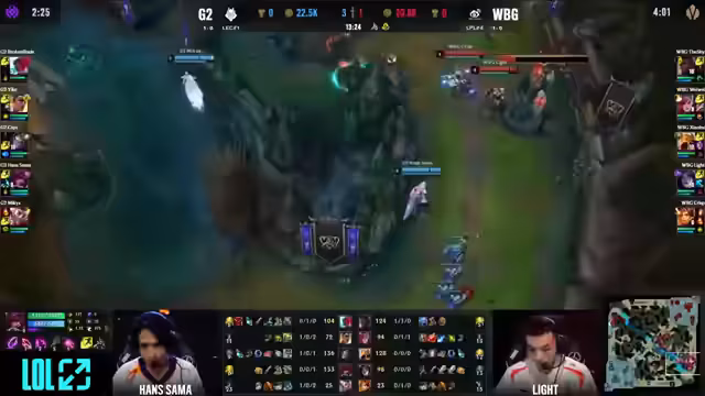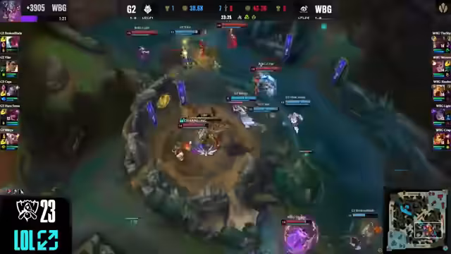 06:35:03G2 Esports sichert sich den ersten Exus-Tour und eliminiert Shaohu, obwohl Micky kurz darauf fällt. Trotzdem bleiben alle anderen G2-Spieler am Leben. G2 greift die Nexus-Türme an, wird aber durch Shaohus Rückkehr gestoppt. G2 muss den Baron Nashor auf der Karte berücksichtigen und Teleport-Strategien anwenden. Jaik leitet einen entscheidenden Engage ein, unterstützt von Magnet, der Shaohu ausschaltet, und Hans Summer, der lange genug überlebt. Deschai eliminiert Light, aber Hans Summer hält stand, auch dank einer Stopwatch. Shaohu kehrt zurück und verhindert den finalen Durchbruch von G2. Das Spiel erreicht die 36. Minute mit einem fast ausgeglichenen Goldstand. Weibo hat die Möglichkeit auf den Elder Dragon, während G2 auf Caps' Teleport und Wojcikas Treffsicherheit setzt. Wojcika trifft, Caps wird angegriffen, überlebt aber dank Stopwatch und Teamunterstützung. Jaik hält ebenfalls stand und kauft Zeit. Broken Blade wird als entscheidender Faktor hervorgehoben, der mit seiner Ult den Charge von Weih verhindert und so den Sieg sichert. Der Kampfgeist von G2 wird gelobt, trotz einer anfänglichen Win Probability von 100% für den Gegner.