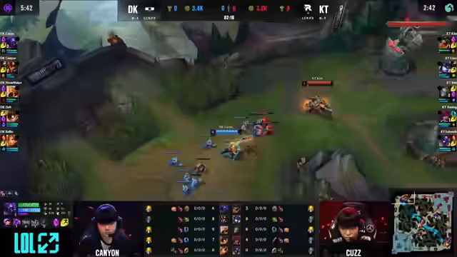 08:11:22KT Roaster und D-Plus Kia liefern sich einen intensiven Kampf um den Drachen, wobei Lehans' Knock-Ups für KT entscheidend sind. Trotzdem gelingt es keinem Team, entscheidende Kills zu erzielen. KT zieht sich zurück, während D-Plus Kia die Ressourcen kontrolliert nutzt. Ein weiterer Angriff von KT führt zu einem erfolgreichen Konter und drei Kills, was das Blatt wendet. Die Shockwave von BDD und der Dominus von Keen sind entscheidend für KTs Überleben. KT gewinnt einen wichtigen Teamfight und sichert sich dadurch Vorteile auf der Karte. Jede Lane ist nun im Vorteil, insbesondere die Bot-Lane und der Jungle. D-Plus Kia sichert sich den Herald, aber KT versucht zu kontern. Keane wird isoliert und stirbt, während D-Plus Kia den Herald erhält. Die Teams agieren faszinierend, wobei D-Plus Kia mit einem gut funktionierenden Getriebe verglichen wird, während KT durch Aiming mehr Geschwindigkeit erreicht. Es entwickelt sich ein Ping-Pong-Vibe, bei dem KT versucht, D-Plus Kia zu matchen, aber Keen in der Wand hängen bleibt.