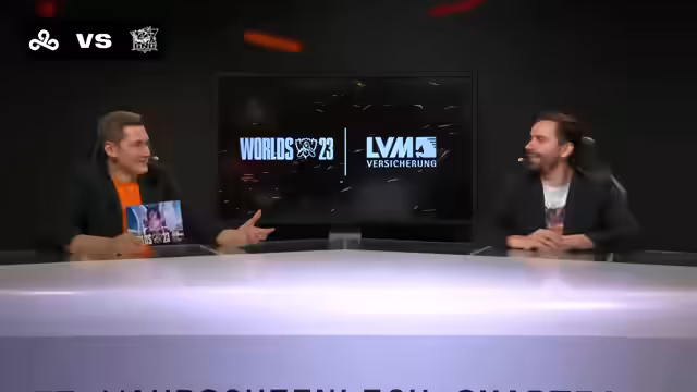 02:21:19Es wird eine Pause angekündigt, um zu überprüfen, ob die FPS-Probleme erneut auftreten. Stattdessen stellt sich heraus, dass Sven Probleme mit seinem Keyboard hat. Es wird vermutet, dass er zu hart auf die Tasten gedrückt hat. Ein neues Keyboard wird benötigt. Die Kommentatoren nehmen dies zum Anlass, um über die Unterschiede bei den Zuschauern zu sprechen und wie Kameraleute und Producer mit solchen Situationen umgehen. Es wird spekuliert, wann es weitergeht, und ein relevantes Replay wird in Aussicht gestellt. Blaber wird von Tarzan engaged, und Hang ist bereit. Sven tauscht sein Keyboard aus, nachdem er zu brutal damit umgegangen ist. Es wird eine Anekdote über einen Vorfall erzählt, bei dem Kaffee über ein Keyboard gelaufen ist. Es wird erklärt, dass die Spieler zwei originalverpackte Sets an Peripheriegeräten mitbringen müssen, die eingeschlossen werden, um Cheats zu verhindern. Ein Set wird für die Bühne ausgehändigt, das andere dient als Ersatz. Es wird die Frage aufgeworfen, ob die Spieler die Peripheriegeräte selbst mitbringen oder ob dies vom Hersteller erfolgt. Es wird die Geschichte erzählt, wie Faker bei einem Turnier mit einem Metalldetektor kontrolliert wurde und eine Dose Thunfisch dabei hatte. Ein Replay eines wichtigen Moments im Spiel wird gezeigt. Es wird ein Vorfall geschildert, bei dem Kernus versehentlich sein Headset ins Gesicht gehauen hat. Es wird über falsche Keybindings, Runen oder Skins gescherzt. Es werden Wortwitze gemacht, und Corey JJ wird erwähnt. Die Tastatur ist ausgetauscht und getestet. Die Kommentatoren sprechen über USB-Stecker und die nervige Software, die mit Hardware mitgeliefert wird. Sie kritisieren, dass jedes Gerät seine eigene Software hat und dass diese oft automatisch startet. Es wird über Newsletter und Kreditkartenabfragen gescherzt. Es wird eine Pause angekündigt, und die Zuschauer werden begrüßt. Caps Vater wird im Publikum entdeckt, und es wird über sein Filmgesicht gescherzt. Ein NNO-Shirt wird gesichtet. Es wird ein Quiz angekündigt, und es wird über die Funktionsweise der Peripherie-Checks bei Profis gesprochen. Die Main-Peripherie ist Privatbesitz, aber es gibt eine Software, die jedes USB-Gerät auf unerwünschte Software überprüft. Als Backup gibt es eine originalverpackte Tastatur. Es wird betont, dass man seine Tastatur nicht kaputt machen darf. Der Metalldetektor wird immer noch verwendet. Es wird ein Quiz vorbereitet.