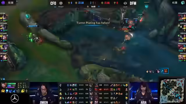 00:43:18Das Spiel startete ereignislos, bis ein First Blood in der Mitte fiel, das jedoch nicht perfekt ausgeführt wurde. Detonation Focus Me's Jungle-Harv zeigte eine sehr gute Rotation und eroberte das wichtigste Red Buff von Flying Oyster's Jungle Steel. Dies gab DFM einen CS-Lead und nahm Proaktivität aus dem Spiel. Bot-Lane fühlte sich für Draven unangenehm an, da Maokai stark war. Ein späterer Teamfight endete für Harv tragisch, was den frühen Drachen und die Goldvorteil für Flying Oysters sicherte. DFM schien jedoch nicht in Panik zu verfallen und spielte weiter gechillt.