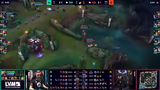 01:28:00Excel erlangt im Spiel gegen BDS die volle Kontrolle und dominiert das Geschehen. Durch ständige offensive Aktionen, insbesondere von Axel, und die geschickte Ausnutzung von Fehlern in der Verteidigung von BDS, zwingt das Team den Gegner in eine defensive Haltung. Das initiale Vorgehen von Excel führt zu einem frühen Turmverlust für BDS und erzeugt einen Dominoeffekt, der die gesamte Top- und Bot-Lane benachteiligt und die Excel-Spieler zuruckhaltender gestaltet.