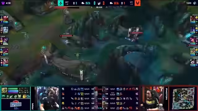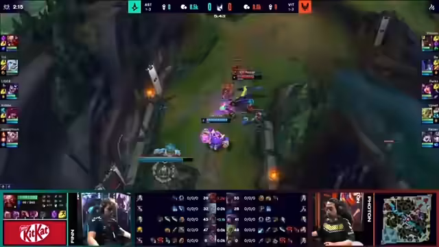02:38:11Ein entscheidender Teamfight ereignet sich um den Baron Nashor. Obwohl Vitality auf dem Papier einen besseren Draft hat, agiert Astralis proaktiv und zwingt Vitality in einen ungünstigen Fight. Die Teamfights laufen für Astralis in ihren Favor, da sie Fehler von Vitality, wie isolierte Engagements und Makro-Fehler, hart bestraft. Vitality scheint unfähig, die notwendigen, koordinierten Teamfights zu initiieren, die für ihren Sieg nötig wären, und lässt sich stattdessen in nachteilige Situationen locken.