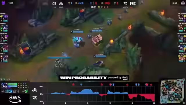 00:32:04Das Spiel beginnt mit aggressiven Lane-Trades, insbesondere auf der Top-Lane, wo Fudge (Cloud9) den Vorteil erringt und Oskarini (Fnatic) einen Nachteil in der Wave-State erleidet. Cloud9 dominiert die frühen Kämpfe und eliminiert Gegner effizient. Fnatic hat Probleme mit dem fehlenden Damage und der unkoordinierten Teamkommunikation. Cloud9 nutzt die Überlegenheit, um dem Fnatic kaum eine Chance zu lassen und siegreich aus dem ersten Spiel hervorzugehen.