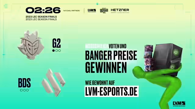 02:12:04Es wird auf die EMEA Masters hingewiesen, die am nächsten Tag beginnen. Der dritte Drake geht an BDS. G2 wird in die eigene Basis gedrängt, was es Jace und Kaiser schwer macht, effektiv zu spielen. Yike kann keine Flanks finden. G2 muss eine gewagte Eröffnung mit Mickiex finden, um Crowny auszuschalten, aber dieser ist durch Schilde, Cleanse und Flash gut geschützt. Caps wird im 1 gegen 1 von Adam überrascht. Yike ist die Hoffnung für G2. Broken Blade findet einen Stun gegen Crowny, aber es reicht nicht aus. Team BDS sichert sich den Nashor. Caps' Flank geht ins Leere. BDS kontrolliert das Spielgeschehen und drückt die Lanes. In 50 Sekunden steht die Mountain Soul für Team BDS an. Jaik versucht einen Steel beim Nashor, scheitert aber. BDS sichert sich den Nashor und belagert die Basis von G2. Caps wird angegangen und stirbt. Yike versucht, Crowny zu erreichen, scheitert aber. Team BDS sichert sich die Soul und gewinnt den Fight. BDS bedankt sich für das gewonnene Spiel. Crowny spielt vorsichtig und lässt die Frontliner die Picks suchen. Die Ivern-Darius-Kombo erweist sich als eklig.
