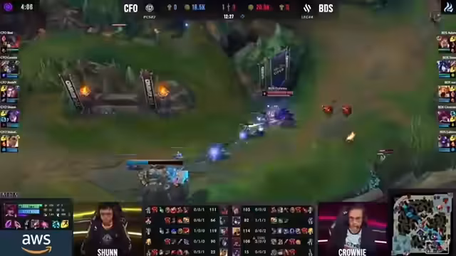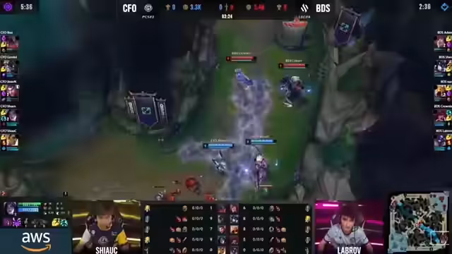 03:22:11Das Spiel beginnt mit hohem Druck in der Anfangsphase. Flying Oysters agiert aggressiv, was für Team BDS, insbesondere mit der Kalista-Lane, zu Schwierigkeiten führt. Der Streamer hebt die clearen Engagements der Flying Oysters hervor und kritisiert die verpassten Chancen von BDS, erste Objive zu sichern. Bot-Lane-Trades stehen im Zentrum der frühen Aktionen.