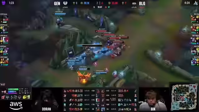 03:49:33BLG ändert die Lane-Zuweisung, um ShowMaker gegen Wien zu schicken, um ihn direkt in Teamfights dabei zu haben. Der Rumble wird auf der Sideline erwartet, um sich durchzusetzen, was Sorgen bereitet. Akali fühlt sich im Schlaraffenland, während Rumble gegen Xanta zurückliegt. Chovy muss gegen Akali aufpassen. BLG kämpft sich nach vorne und gleicht den Goldrückstand aus. Gen.G hat zwar die Items, aber nicht unbedingt die Damage-Granaten. Rell und Vy bringen nicht genug Schaden für Single-Catches. Akali kann nicht getradet werden, da sie einen all-in gehen und töten kann. Es ist ein komplett ebenes Spiel. Beide Jungler vereinen die meisten Heals auf sich, was zeigt, dass beide Teams versuchen, proaktiv zu arbeiten. Es hängt davon ab, wie der nächste große Teamfight aussieht. Akali hat einen Vorteil auf der Sidelane gegenüber Niko, aber Sanda gegenüber Rumble. Ash ist mit dem zweiten Item fertig. Es folgt ein Catch und ein Kill gegen Peanut. Gen.G ist in Unterzahl. BLG ist am Drücker.