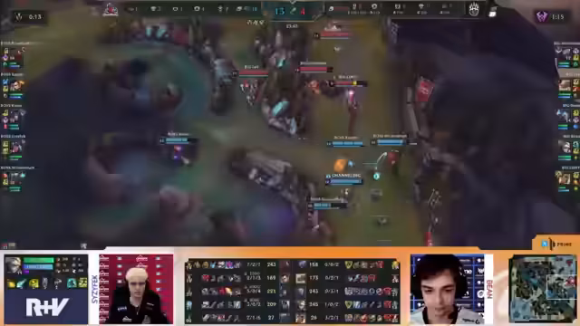 00:45:42Das Spiel beginnt mit einem sehr aggressiven Early-Game von Rossmann, das Big überraschend 3 zu 1 in Tötungen in Führung legt. Trotz dieses Vorsprungs hält Big die Führung stabil, da ihr durchschnittliches Early-Game als eines der besten der Liga gilt. Der Fokus liegt auf der Bot-Lane von Big, die sich erholen kann, während die Side-Lanes und Teamfights zunehmend in den Fokus rücken. Rossmanns Plan, mit Global Pressure zu agieren, scheitert, als BIG die Führung übernimmt und in der Map-Kontrolle dominiert.