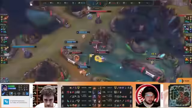 00:26:42Die Lane-Swap-Änderungen werden diskutiert, die Laneswaps im Early-Game verhindern. Dies zwingt die Teams, Champions zu wählen, die im 2v2 auf der Bot-Seite überleben können. Corki kann alleine klarkommen, während Varus und Rel als starkes Botlane-Duo gelten. Braum ist ein Lane-Bully. Hasi wird auf Asiel erwartet. 610 war ein wichtiger Faktor für den Erfolg von Team Orange Gaming im Winter Split. Das First Blood geht an Smurfe, aber er stirbt im Gegenzug. First Blood hat nicht mehr den gleichen Impact wie früher. Teko ist wieder unterwegs. Rell stirbt. Seaboy macht den Drake und Teko ist an den Grubs. Venorem stirbt auf der Lane. Die ersten Objectives werden getradet. Auf der Botlane wird viel investiert. VCC flasht, wird aber trotzdem von der Chain of Corruption getroffen. Er stirbt. VCC hat keinen Flash und Cleanse mehr. Teko versucht es mit dem Counter-Engage gegen Venorem. Tekko Tekko versucht rauszukommen. Flash wird ebenfalls geused. Schöner Charm am Ende jetzt, aber die Ultimaten nicht genug.