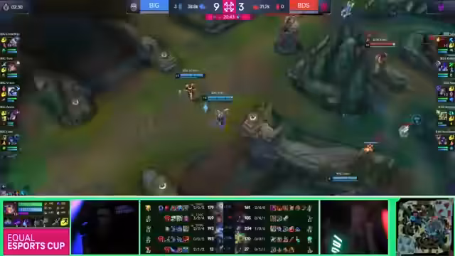 04:30:22Das Spiel entwickelte sich zu einem ständigen Kampf um Objektive und Kills. Big zeigte deutlich bessere Teamkommunikation und Engage-Kompared zu BDS. Die erste Entscheidung fiel beim ersten Dragon-Kampf, den Big nach erfolgreichem Catch auf Tress gewinnen konnte. Mit Level 6 für verschiedene Champions und den ersten vollständigen Items begann das Spiel zu eskalieren, mit Big als aktiverem Team.