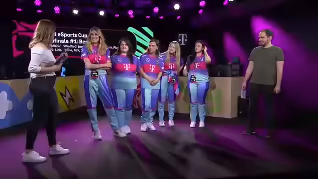 02:25:12Die Kommentatoren begrüßen Antje, Jenax und Clara auf der Bühne. Antje, VP Brand Experience Manager bei der Deutschen Telekom, zeigt sich begeistert vom Erfolg des Cups und der Resonanz. Clara von der eSports Player Foundation hebt den enormen Nachwuchsansturm hervor, mit Bewerbungen aus 21 Ländern. Jenax, deutscher Meister mit SK Gaming, betont die Wichtigkeit solcher Initiativen für den Einstieg von Frauen und nicht-binären Personen in den Esport. Er stellt fest, dass das Niveau hier sehr hoch ist.