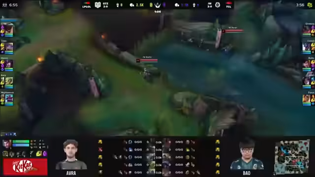 04:45:39Die Teams stehen in der ungewöhnlichen Situation, dass beide T1-Türme in der Mitte noch stehen, was den Spielverlauf beeinflusst. Entscheidend ist der Nashor-Baron, den GTZ kontrollieren muss, um weiter Druck aufzubauen. Die Spieler müssen vorsichtig agieren, da die Gegner eine Überzahl an Champions haben und Teleport ein entscheidender Faktor ist. Die Itemwahl und die Fähigkeit, bestimmte Picks wie Aatrox zu kontrollieren, sind entscheidend für den weiteren Spielverlauf.