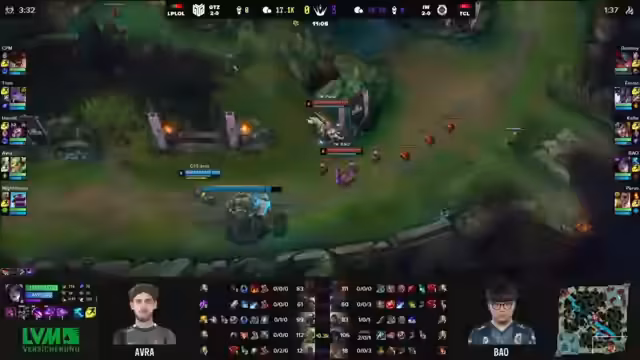 02:52:38Im weiteren Spielverlauf dominieren die Portugiesen zunehmend. Strategische Fehler und perfektionierte Engagements führen zu mehreren Kills für GTZ eSports. Aphra mit seiner Infinity Edge wird als starker Carrying-Faktor identifiziert. Die Teleport-Koordination und Positionierung sind entscheidend im Late Game. Die Portugiesen setzen sich letztendlich mit einer soliden Teamleistung durch.