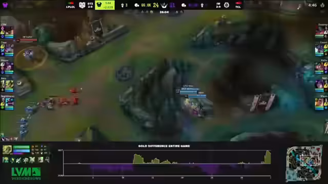 01:57:56Legolas wird instant wegteleportiert und geplatzt. GTZ sichert sich den Baron, da zwei von drei Carries weg sind. Mervyn geht zum Drachen. Legolas startete 4-0 ins Spiel, hat aber seitdem nur gehintet. Er war wieder out of position und wurde sofort abgeholt. GTZ hat den Baron und damit den Goldrückstand ausgeglichen. Es wird die illegale Aktion von Yon diskutiert, der in Jarvans Ultimate reingezogen wurde. Syndra kann mittlerweile sehr gut mit Joon umgehen. Es werden Stunttricks für Syndra erklärt, bei denen man Wände nutzen kann, um die Reichweite zu verlängern. Die große Frage ist, wie GTZ das Spiel weiterführen kann. Aphra macht mit Zeri guten Schaden. Es wird festgestellt, dass Zeri manchmal keinen DPS oder Burst hat, aber plötzlich hart zuschlägt. GTZ hat einen etwas schlechteren Draft erwischt und muss Fehler bestrafen, um zurückzukommen. Sie haben aber die einfachere Teamkampf-Kombo. GTZ holt mit dem Baron-Buff nur einen TZ-Tour-Mitte, da Yon in der Side-Lane viel Tempo weggenommen hat. GTZ muss jetzt forcen, da Zeri einen 4-Item-Power-Spike hat. Je länger das Spiel dauert, desto stärker wird Syndra. Sie hat im Kit mit den Stacks nochmal das Rabadons mit eingebaut. Im Teamfight ist das nicht zu vernachlässigen. GTZ gewinnt einen Fight und verliert nur Sion. Die Carries machen viel Damage. Es wird die Frage gestellt, was GTZ noch bekommt, da sie das Spiel übernehmen. Yon geht für einen Inflash, was kritisiert wird. Alistair muss sich opfern und wird durch die Ultraschung gebürstet. Der Execute von Syndra wird bemerkt, was bedeutet, dass sie volle Stacks hat. GTZ startet den Baron und nimmt ihn erneut mit.