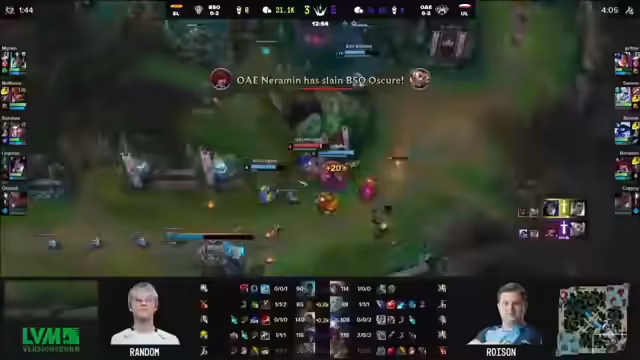 01:39:54Die Leistung des Supports Oskio mit Alistar wird hervorgehoben, insbesondere sein Fähigkeit, Fehler zu erkennen und zu bestrafen. Die Notwendigkeit guter Kommunikation und Koordination wird betont, besonders im Vergleich zwischen unterschiedlichen Regionalstärken. Die Bisons zeigen starke individuelle Leistungen, haben aber Probleme im Teamplay.