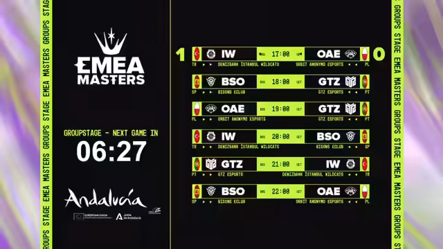 03:17:11Das vierte Spiel des Tages bringt den amtierenden Titelträger der EMEA Masters, die Istanbul Wildcats, gegen die Bisons, das vielleicht beste Team aus Spanien, auf den Bildschirm. Beide Teams sind für ihr kreatives und starkes Gameplay bekannt. Die Analysten gehen von einem spannenden und hochwertigen Spiel aus, auch wenn der Fokus durch das überzeugende Auftreten des portugiesischen Teams etwas in den Hintergrund gerückt ist. Die Dynamik der Gruppe erscheint dadurch interessant, da nun sowohl der erste als auch potenziell der zweite Platz vergeben sind.