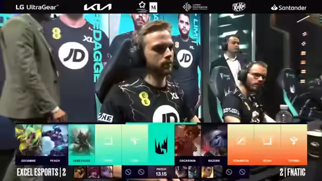 01:13:28Fnatic will durch Range outscalen. Excel muss Objectives erzwingen, um das Spiel zu gewinnen. Sie wollen den Chemtech Drake für eine gute Soul. Excel will Fnatic zum ersten Mal seit 2017 nicht zu den Worlds lassen. Excel secured den ersten Herald. Fnatic bekommt einen Kill auf Ivern und Oskarini bekommt viel Gold auf der Toplane. Excel secured den zweiten Drake. Fnatic will über Gwen-Side-Lane das Game eklig machen. Gwen kann aber auch teamfighten. Excel teilt Gold auf Patrick und Peach auf. Fnatic fängt Peach und kann Botlane unter Druck setzen. Fnatic sieht das Spiel nicht verkehrt aus. Excel braucht die Ocean Soul, um das Spiel zu gewinnen. Fnatic will den dritten Drag contesten, um nicht alles auf eine Karte zu setzen.