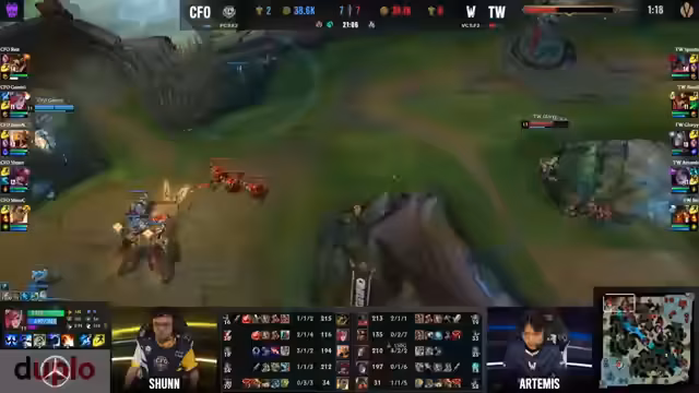 02:42:43Die Jungle-Phase ist entscheidend für das Spielgeschehen. Der Jungler der Flying Oysters, Gemini, entscheidet sich, den ersten Herold zu stehlen. Dieser wird jedoch von Team Wales entdeckt und es kommt zu einem erbitterten Kampf. Nach anfänglichen Schwierigkeiten gelingt es Gemini doch noch, den Herold zu klauen und gibt damit seinem Team einen Vorteil. Die Bot-Lane erlangt dadurch Level 6, während die gegnerische Bot-Lane noch bei Level 5 ist.