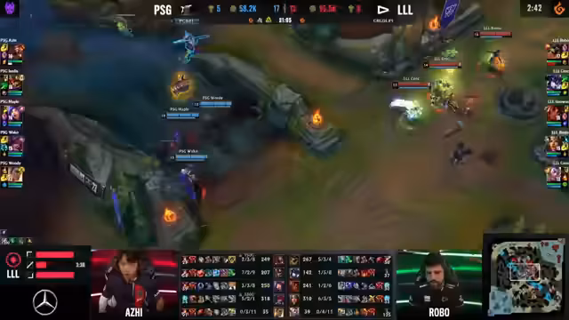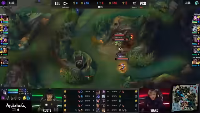 00:49:02Die ersten Minuten des Spiels sind geprägt von aggressiven Kämpfen und Objektiven. PSG nutzt die Stärke ihres Jarvan IV und setzt die gegnerische Lauer unter Druck. Besonders der Top-Lane-Dive und die anschließende Rotation führen zu frühen Kills für PSG. Der junge Spieler Junjia von PSG glänzt mit exaktem Positionsspiel. Laut kann nur schwer skalieren und verliert wichtige Objekte wie den Herald, was den weiteren Spielverlauf prägt.