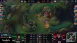 01:03:20Ein intensives beginnendes Spielgeschehen, in dem Maple Root bittet, gefolgt von einem Teleport in die Flanke. Obwohl es dem Team fehlt Root zu halten, gelingt es, ihn mit cleverem Baiting und einem cleveren Engage von Woody zu eliminieren. Dabei wird Nico-Klon in eine schwierige Position gebracht, was jedoch durch Blasco gerettet wird. Die Analyse der Fähigkeiten zeigt, dass die Morgana-Q mit 3,5 Sekunden der längste CC im Spiel ist.
