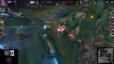 01:56:07T1 zeigt eine herausragende Teamperformance. Faker rettet mit einem perfekt platzierten Charme und Everfrost den Teamkameraden Light vor dem sicheren Tod. Carrier unterstützt Gumayushi mit einem Fates Call, der diesen vor dem sicheren Tode bewahrt. Die 1-3-1 Aufstellung von T1 wird dominierend. Nach dem Baron-Nashor und dem damit verbundenen Goldvorteil greift T1 konsequent an, routet den Top-Laner TheShy und eliminiert den Tyrion. T1s kompromissloser Spielstil zeichnet sich durch eine durchschnittliche Spieldauer von unter 30 Minuten aus.