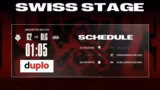 00:28:51Der Stream beginnt früh morgens mit einer Begrüßung der Zuschauer und einer Erklärung der frühen Startzeit aufgrund der Zeitumstellung. Der Kommentator Masterplay gibt einen Überblick über den aktuellen Stand der Swiss Stage und erläutert die besondere Schwierigkeit des Formats, da die Teams nur wenig Zeit zur Vorbereitung auf die nächsten Gegner haben. Er erwähnt auch die gestrigen Ergebnisse, darunter die Niederlage von G2 gegen NRG und den Erfolg von T1 gegen BLG.