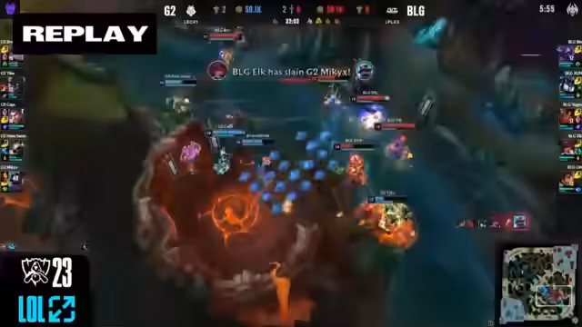 05:46:03BLG versucht, Caps' Aggressivität auszunutzen und den Charge zu verhindern. Trotzdem versuchen die Tutors zu hardforcen, aber der nötige Follow-Off-Damage fehlt. Caps' Schockblast ist präzise, aber der Knackpunkt ist seine Entscheidung nicht zu flashen, da sein Team noch nicht richtig positioniert ist. Broken Blade kommt mit Teleport an die Bot-Lane hinzu, was zu einem weiteren tödlichen Angriff von Bin führt. Der Counter-Strike von BLG zeigt Wirkung und setzt G2 unter Druck.