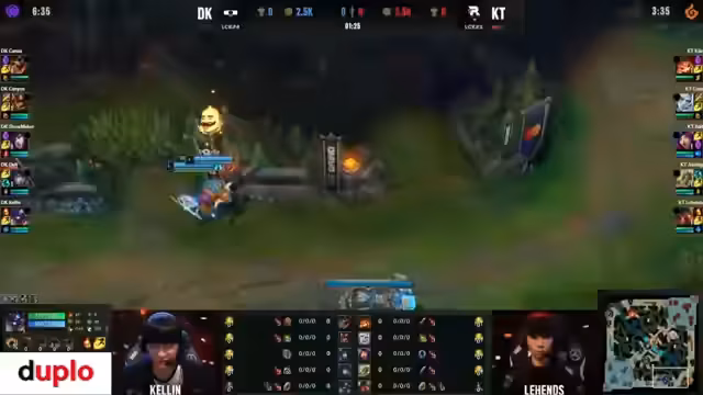 01:08:57In der Anfangsphase des Spiels wird über die Strategie und Positionierung der Spieler diskutiert. Deft gelingt das First Blood gegen Cullen, während BDD versucht, den First Turret auf der Bot-Site zu nehmen. Es folgt eine ungewöhnliche Situation, bei der Showmaker ebenfalls einen Kill holt und das Score auf 2:0 für DK stellt. KT bleibt goldtechnisch hinterher, nutzt jedoch Objectives und tradet hart.