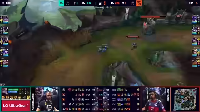 03:20:34Das Spiel steht 1:1 in der Serie und alles hängt vom letzten Teamfight ab. SK sieht eine Chance am Baron Nashor und beginnt den Engage. Allerdings ist XL auf den Flanken gut aufgestellt. Ein 1-3 Engage von XL misslingt, aber SKs Teleport-Engage ist nicht perfekt platziert. Es kommt zum finalen Schlagabtausch, der in einem 2:1 Trade für XL endet, wobei Sertus den Shutdown gegen Patrick holt, Abedagge die Rücklinie bedroht und Irrelevants Teleport-Zugang verhindert wurde. XL gewinnt das Game und damit die Serie mit 2:1.