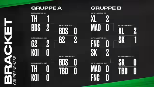 05:06:37G2 sichert sich durch eine Serie von überlegenen Teamfights den Sieg. Sie zwingen BDS zu Fighten, in denen sie durch bessere Kommunikation und Positionierung, insbesondere von Caps und Hans Zimmer, die Oberhand behalten. G2 gewinnt nicht nur den Kampf um den Baron, sondern kontrolliert auch das restliche Spiel. Das Finale wird von einem Pentakill von Kemp gekrönt, der den letzten Rest von BDS eliminiert und G2 einen klaren 2-0-Sieg sowie den Einzug in die Playoffs beschert.
