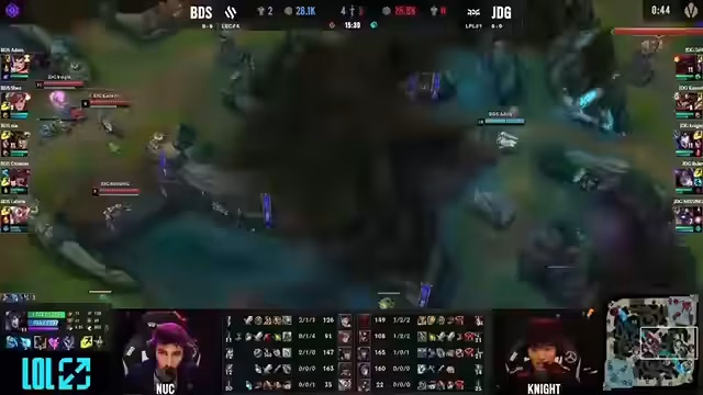 07:42:00LNG beweist, warum sie in der LPL so erfolgreich sind - durch minimale Fehler und starke Rückholmechaniken. Scout mit seinen 11,07 Kills endet das Spiel und zeigt seine Klasse als einer der besten Mid Laner des Turniers. Sein Damage Output übertrifft sogar die Kombination aus Noah und Koska Riening. Die Konsistenz des gesamten Teams macht den Unterschied.