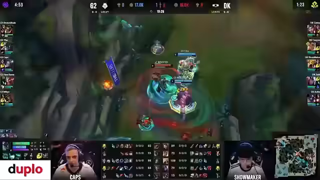 04:55:04Das Spiel beginnt mit G2, die den Draven picken, was in der LEC oft gebannt wird. Hans Sama zeigt sofort Aggression, während D-Plus-Kia defensiv agiert. Die Bot-Lane von G2 unter Drücken, und die ersten Trades erfolgen auf allen Lanes. Erster Draken wird gesichert, was G2 eine kleine Führung bringt. Die Dynamik bleibt spannend mit einem hohen Erwartungsdruck auf G2, um ihre internationale Stärke zu beweisen und Europa zu repräsentieren.